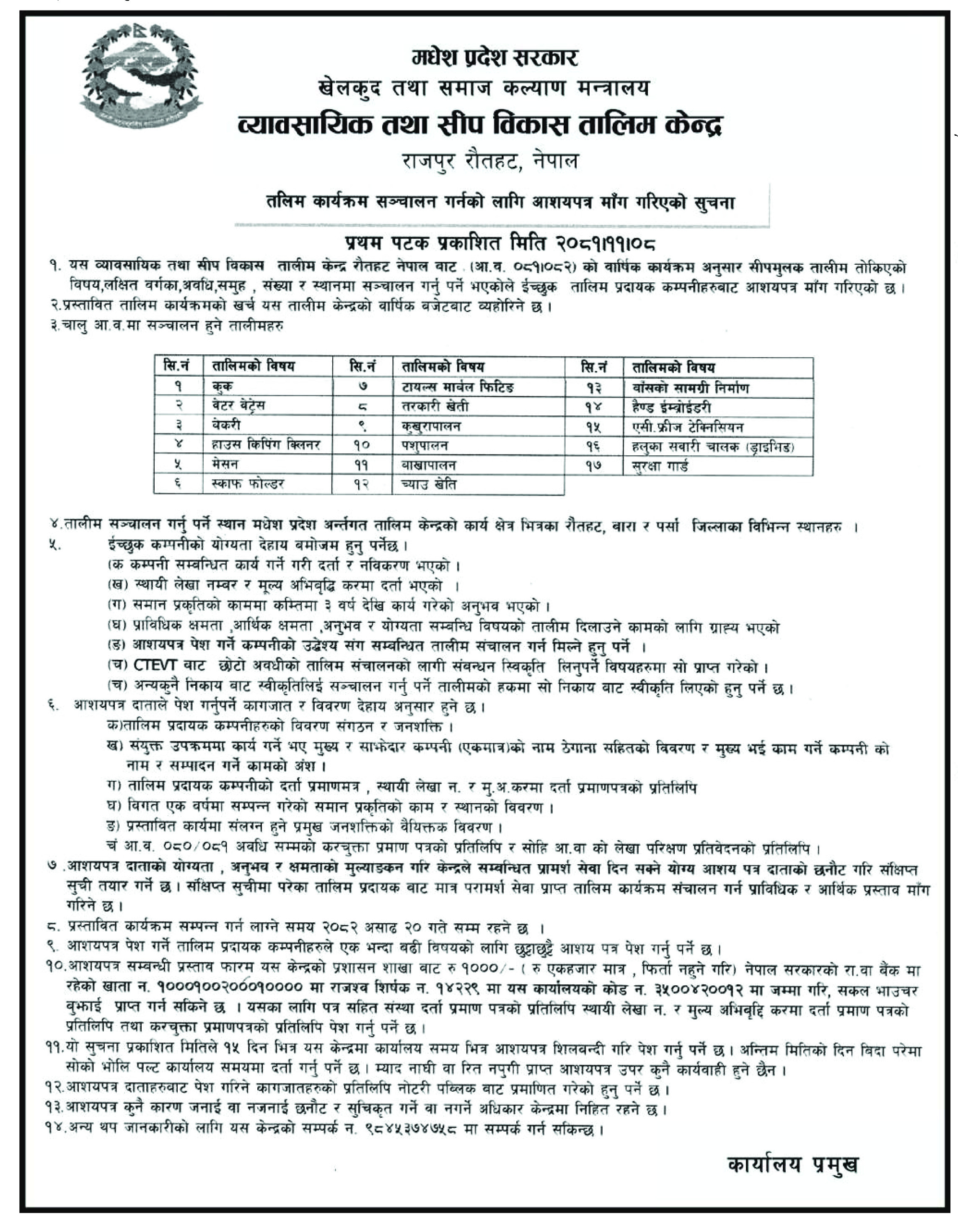 व्यावसायिक तथा सीप विकास तालिम केन्द्र,रौतहट