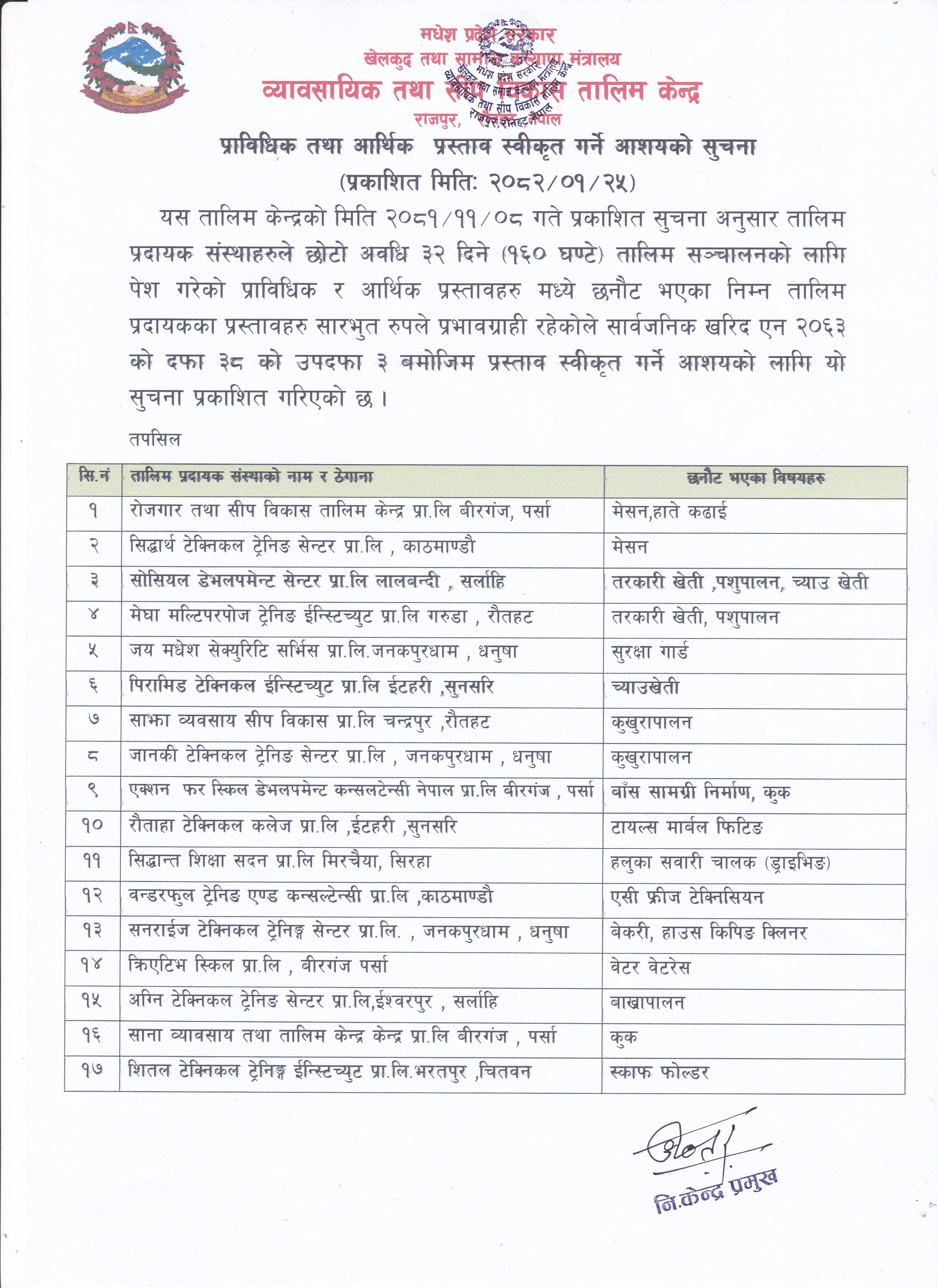 आर्थिक प्रस्ताव खोलने सम्बन्धी सुचना